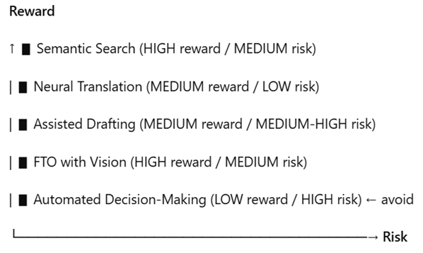 Quick takeaway: Prioritize search/translation/screening; treat “drafting” as assistance, not as autopilot; automated decision-making, not at all.