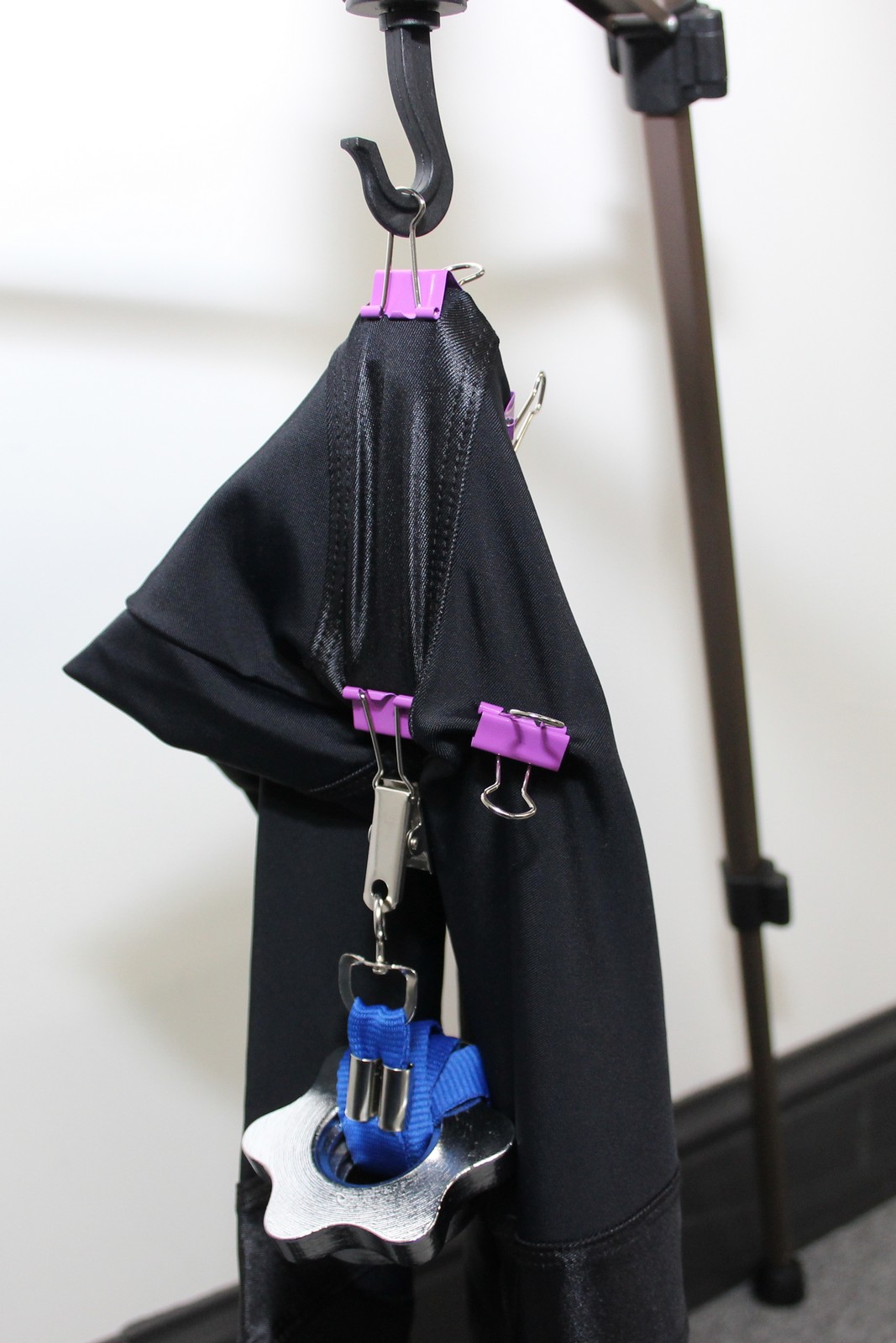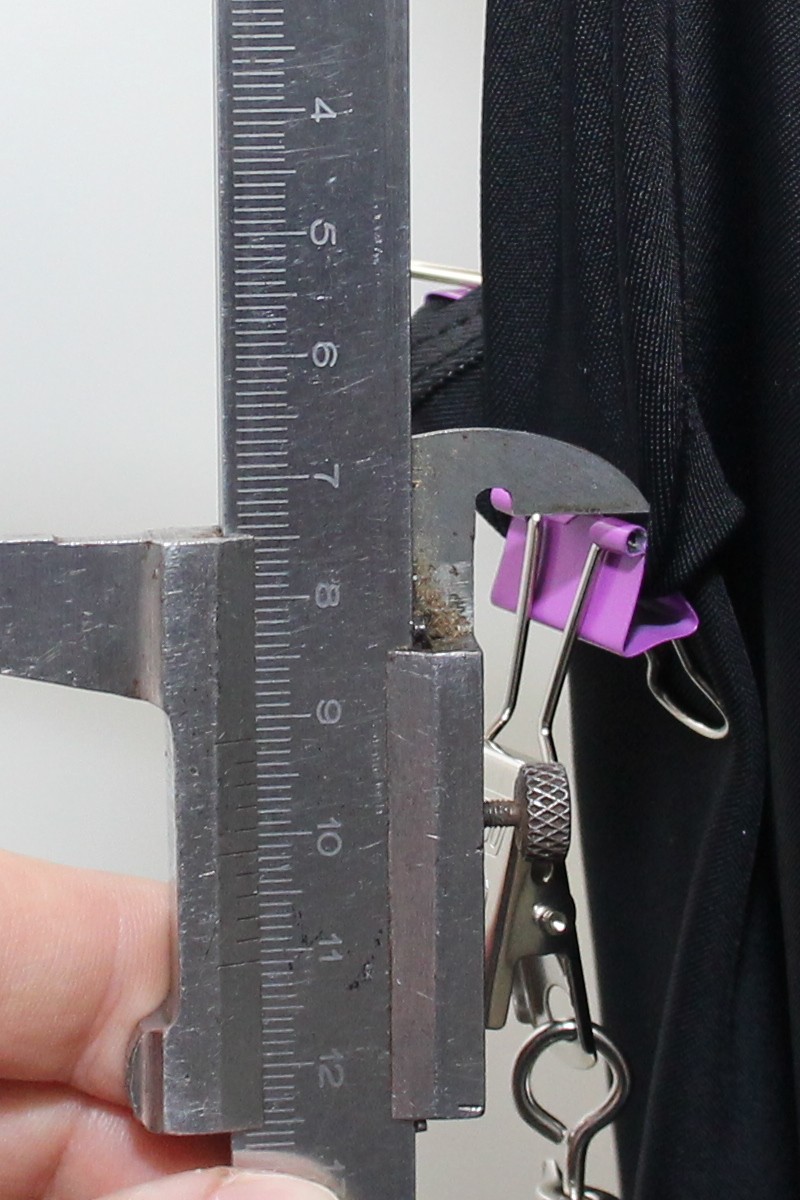To verify one of the patented features – different elasticity of materials used for the compression elements and for the leggings themselves – the expert witness applied suspended weights to various sections of the garment (Figure 2) and compared the length of the fabric in a normal state (Figure 3) to the elongated length under tension (Figure 4).